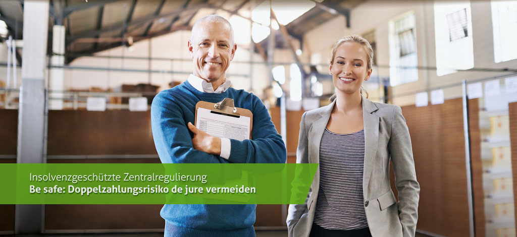 Für die optimale Absicherung Ihrer Geschäfte bietet die GEVA mit ihrem langjährigen Know-how in der Zentralregulierung und einem jährlichen Brutto-Zentralregulierungsvolumen von rund 724 Mio. EUR eine in der Branche einzigartige Lösung in Form des erfolgreichen GEVA Treuhandkontenmodells an. In enger Zusammenarbeit mit Fachanwälten und Wirtschaftsprüfern wurde die innovative und testierte Softwarelösung für eine insolvenzgeschützte Zentralregulierung entwickelt, mit der das Doppelzahlungsrisiko de jure ausgeschlossen wird!